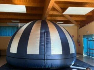 uno spazio infinito a 360*, un Planetario mobile strumento unico di intrattenimento/educazione non solo per i bambini ma anche per gli adulti. Un sistema di proiezione sferica all’interno dell’intera cupola che offre una visione incredibile. Un’area di visione sferica a 360 gradi che nessun altro cinema moderno può offrire.